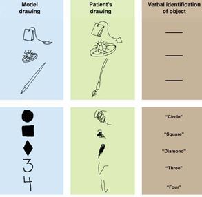 Apperceptive agnosia- fail tests such as visual matching, comparing similar figures and copying drawings
