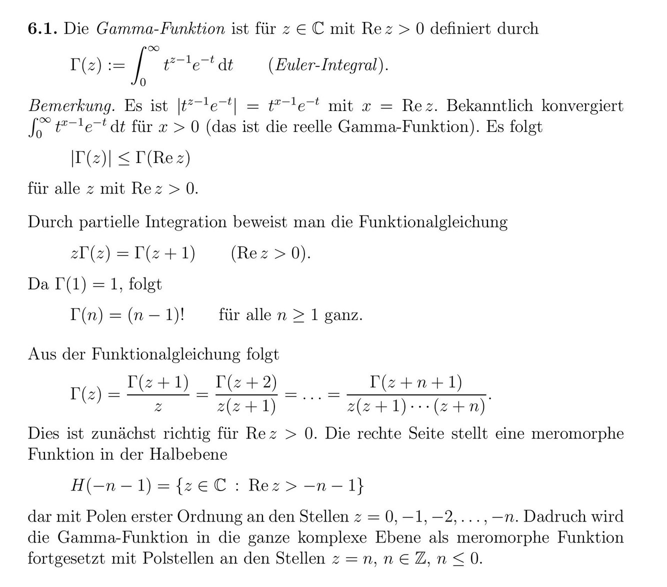 Definiere und bespreche die Gammafunktion