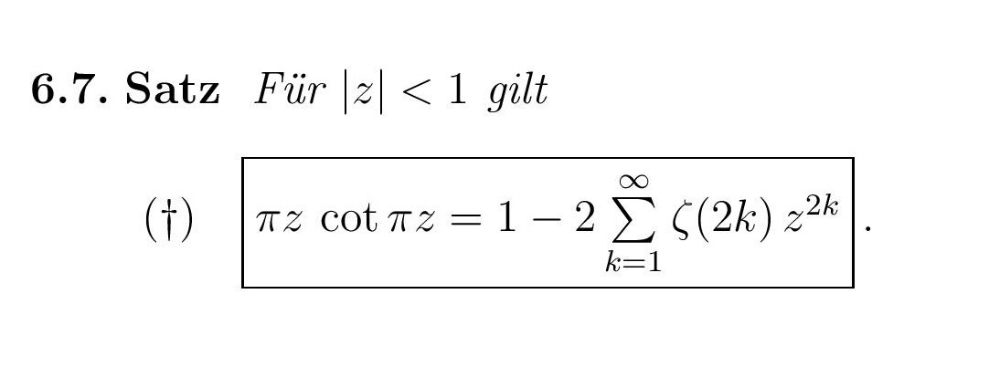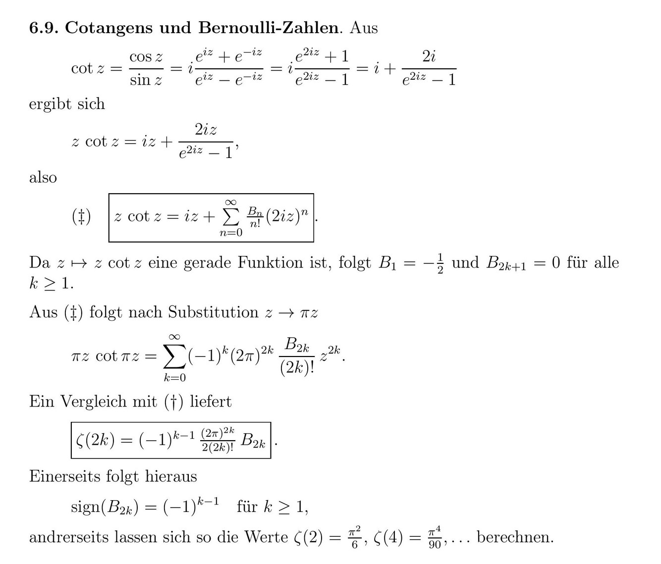 Beschreibe den Zusammenhang zwischen Cotangens und Bernoulli-Zahlen.