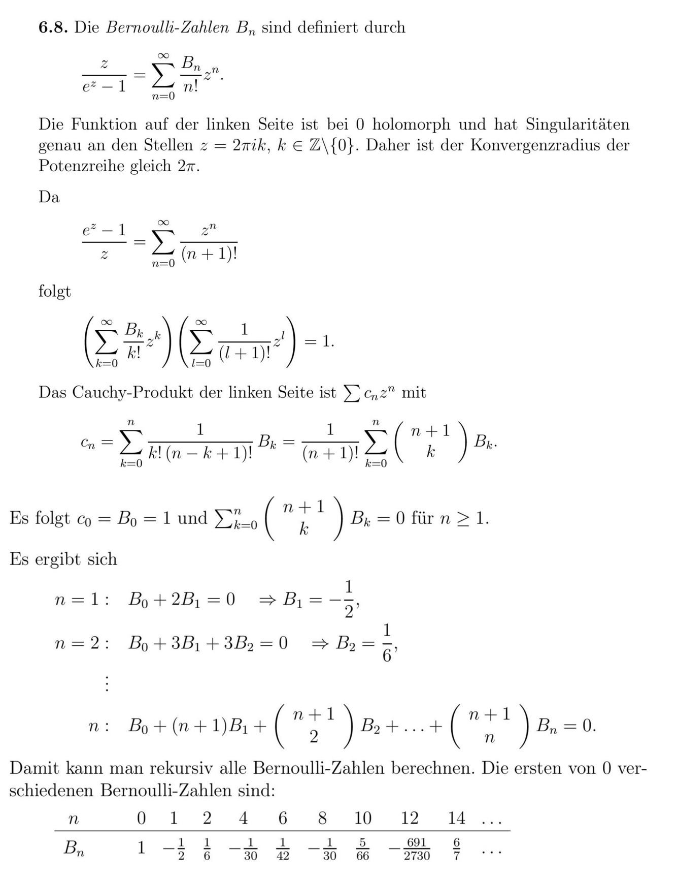 Erläutere die Bernoullii Zahlen.