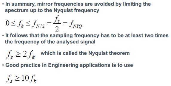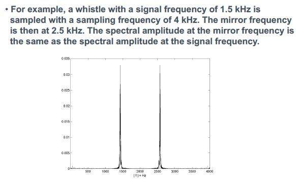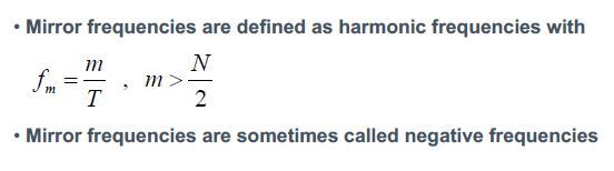 The calculation of the Discrete Fourier Transform (DFT) results in a spectrum which exhibits mirror frequencies