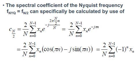 Note that the Nyquist frequency does not have any mirror frequency, or it is the mirror frequency to itself, such that the corresponding spectral coefficient is a real number