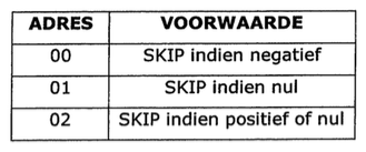 Als het getal aan een bepaalde voorwaarde voldoet, zal hij de teller met één extra verhogen zodat hij over de volgende instructie heen springt. Als aan de voorwaarde niet voldoen is, gaat hij gewoon naar de volgende instructie.