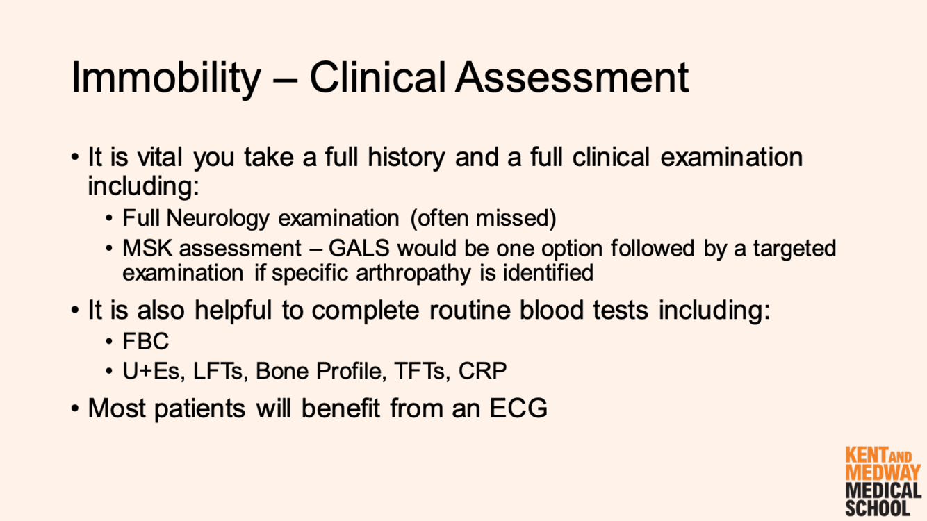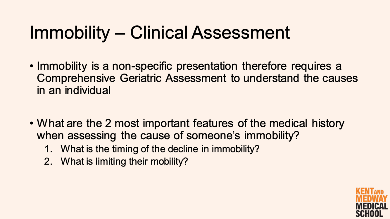 When assessing someone’s immobility - what are the 2 questions that it is important to ask?