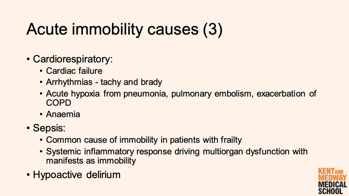 What cardiorespiratory factors can cause acute immobility?