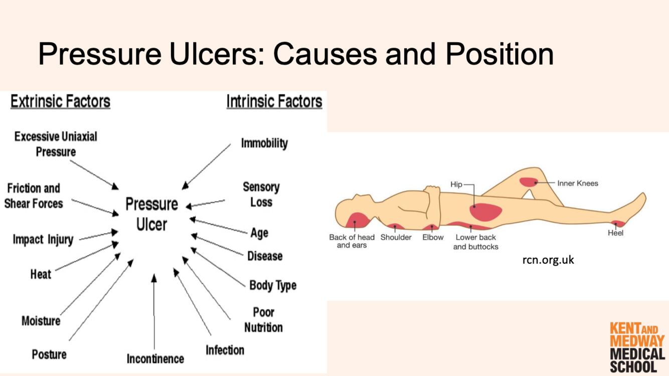 What damage to skin can occur as a result of prolonged immobility?