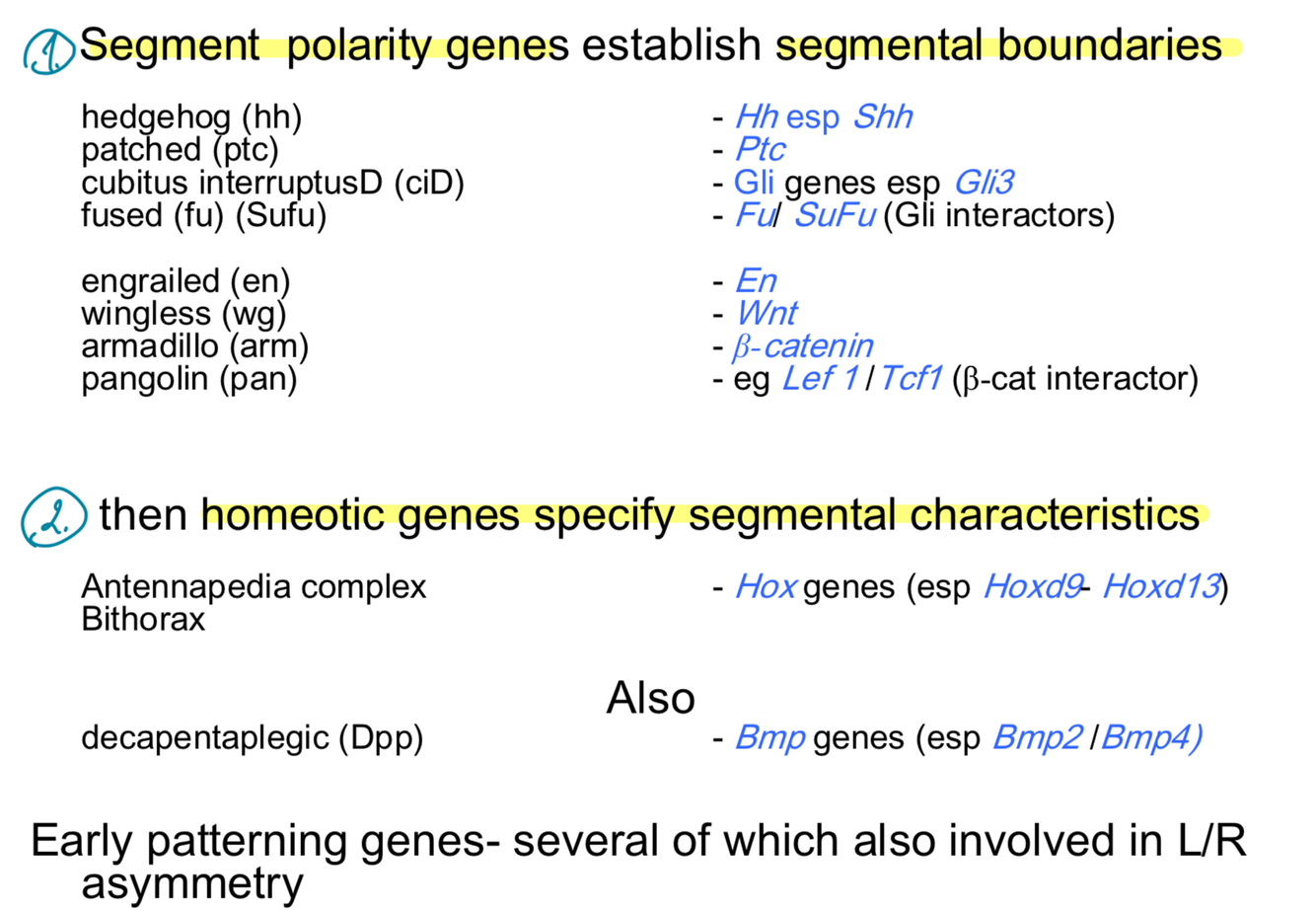 Hedgehog gene - Drosophila gene - called hedgehog because -/- mutants have shortened trunk + all covered in dentacles - instead of forming segments