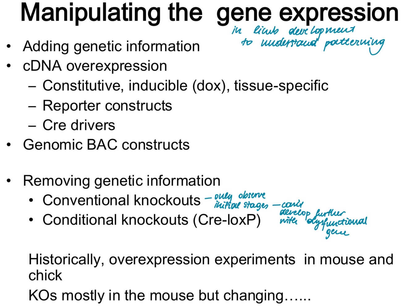 Fgf10 necessary for for limb bud induction => Fgf10 KO - no limbs - some initial outgrowth but no limb bud outgrowth