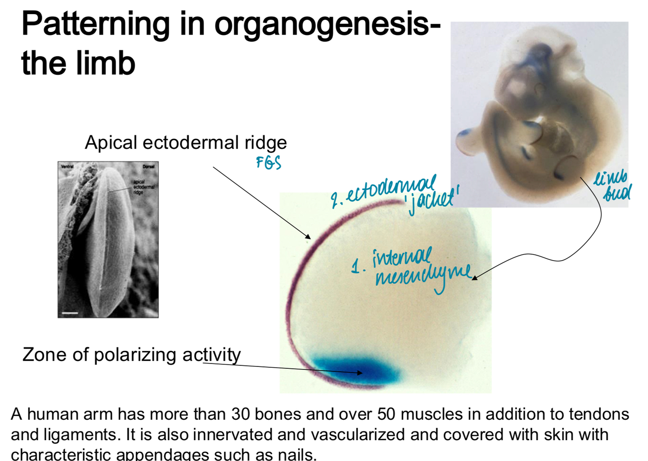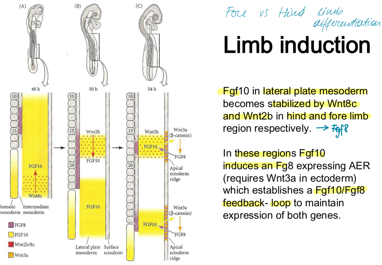 - in the set limb bud regions Fgf10 -> Fgf8 expression => apical ectodermal ridge (AER) formation