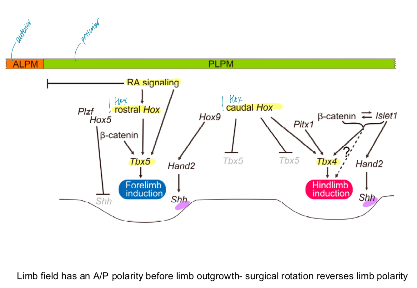 Retinoic acid (RA) signaling regionalizes lateral plate mesoderm (LPM) from which limb buds outgrow - RA regionalizes LPM by regulating Hox expression =>
