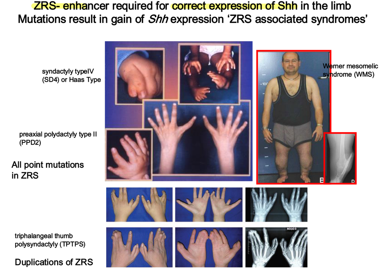 ZRS (ZPA regulatory sequence) enhancer required for Shh expression in the limb - mutations result in ZRS associated syndromes
