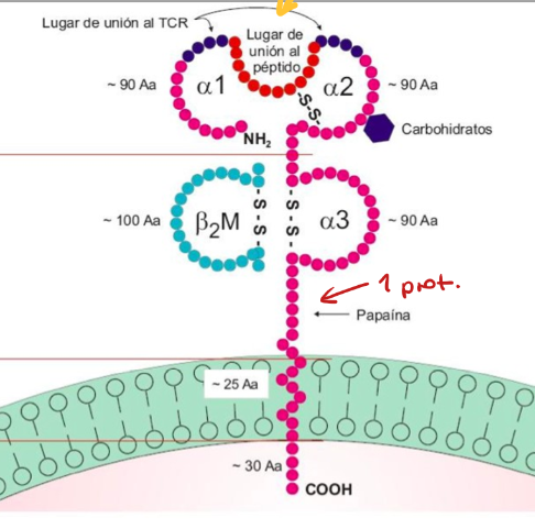 Cadenas peptídicas que forman de MHC I y su unión a membrana: (3)