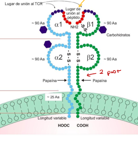 Cadenas peptídicas que forman MHC II y su unión a membrana: