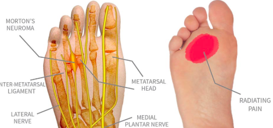 - Common plantar digital nerves that run between metatarsals in the foot are irritated