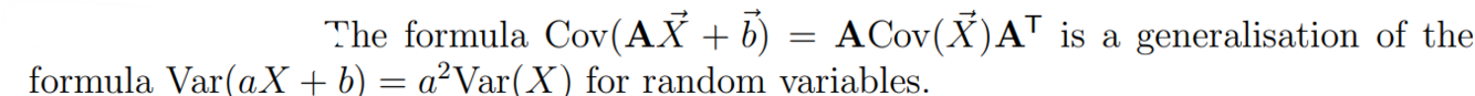 How does the covariance formula for a transformed random vector generalise the variance formula for random variables