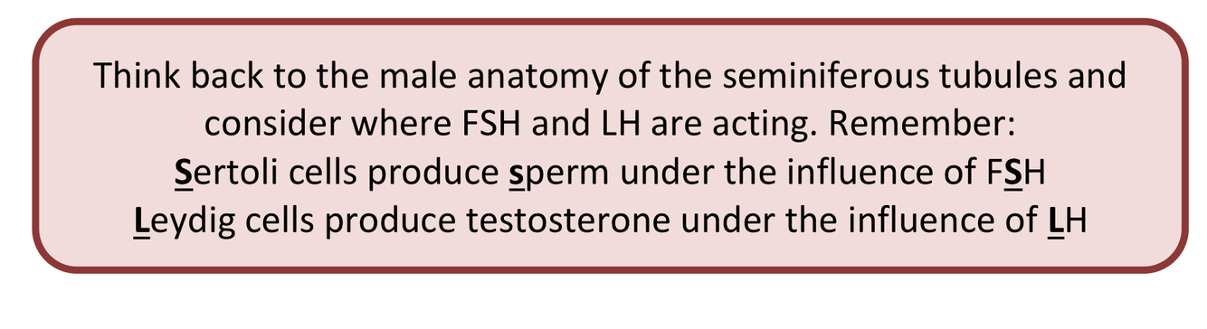 Which cells do FSH and LH act on in males?