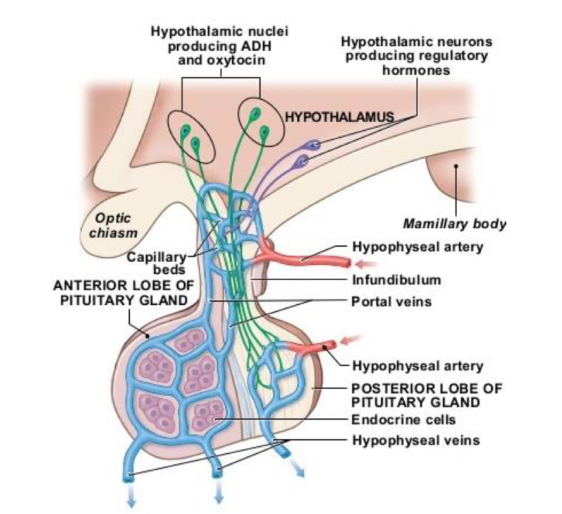 What artery connects the anterior pituitary and the hypothalamus?