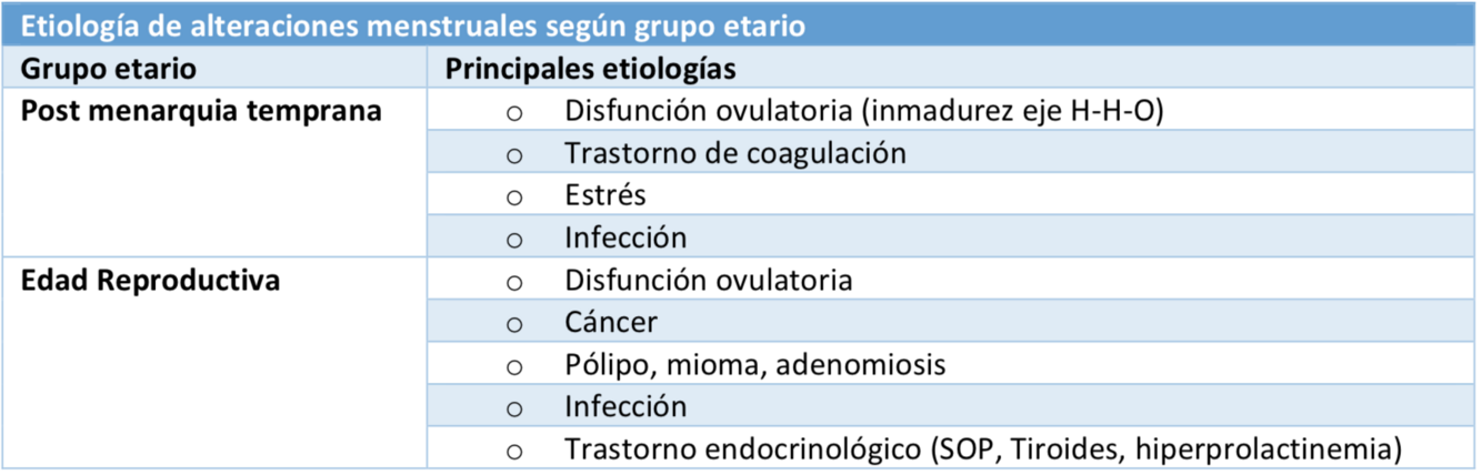 Definido como cualquier desviación del patrón de sangrado uterino normal en mujeres no embarazadas, en edad fértil más allá de la menarquia y que dura al menos 6 meses. Engloba todas las alteraciones de frecuencia, regularidad, duración y cantidad del flujo rojo.