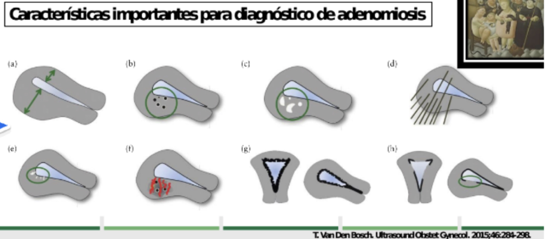 - Nodular → encapsulada por tejido endometrial (ecográficamente como mioma más delimitado)CLC Y EF ADENOMIOSIS