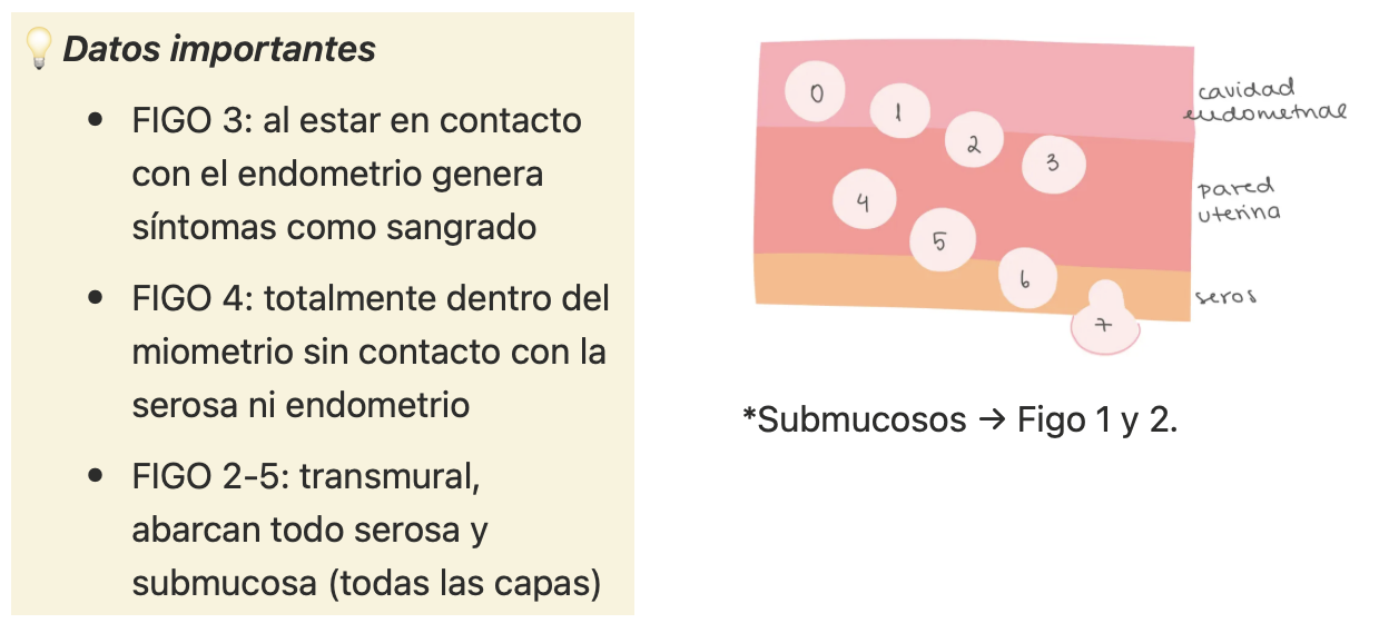 → Derivan del miometrio y presentan una abundante matriz extracelular rodeados de una fina pseudocápsula de tejido conectivo y fibras musculares.