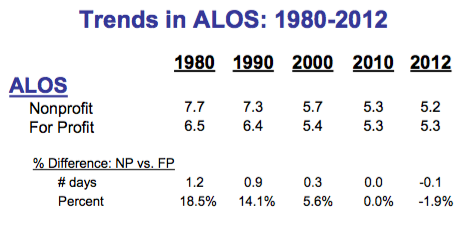 Average length of stay (ALOS) = total # patient days / total # inpatients.