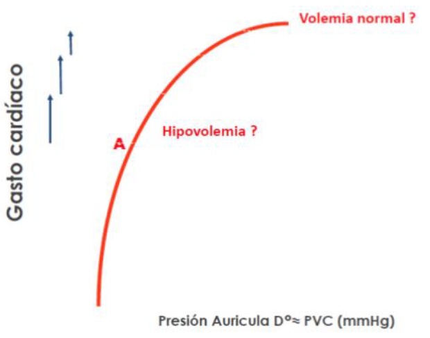 Ejemplo: Paciente con taquicardia ventricular, en donde la PVC/precarga aumentará (lo que disminuirá la capacidad de eyección), aumentando el GC. A su vez, el aumento de la PVC provocará la disminución del retorno venoso, por ende, el flujo venoso será menor y el paciente se va a congestionar.