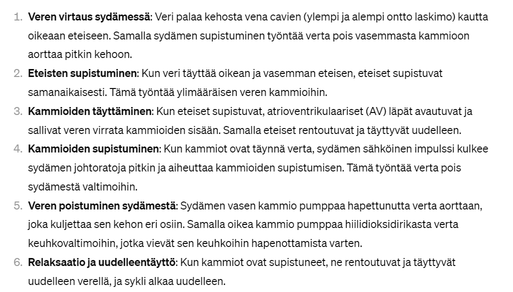 Verta tulee sydämen vasempaan eteiseen keuhkolaskimoista. Eteisten seinämä supistuu.