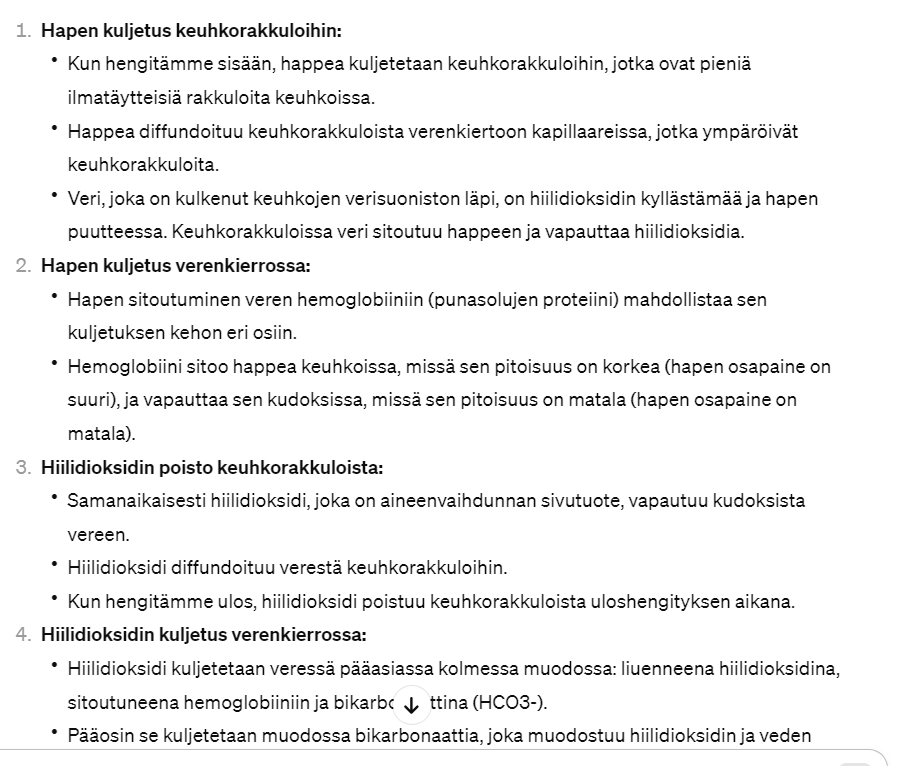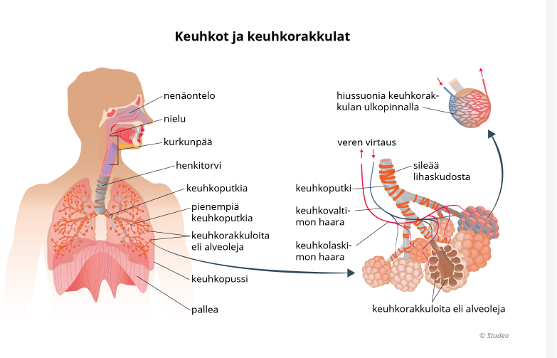 Miten kaasujenvaihto ja hapen ja hiilidioksidin kuljetus tapahtuvat?