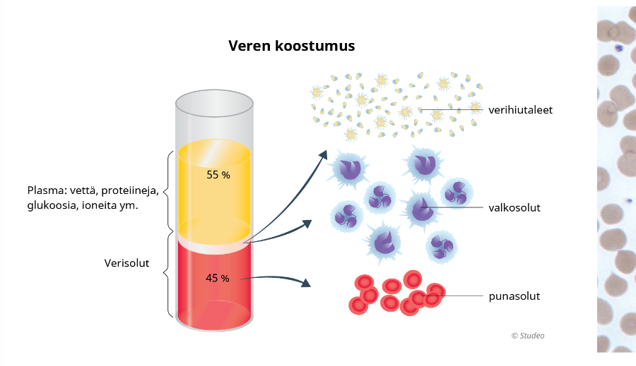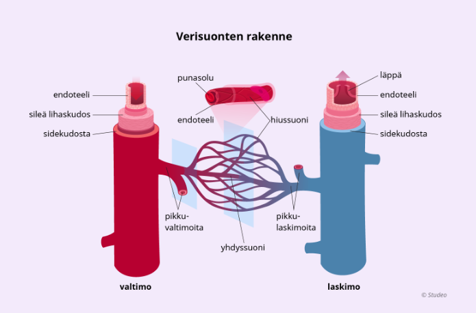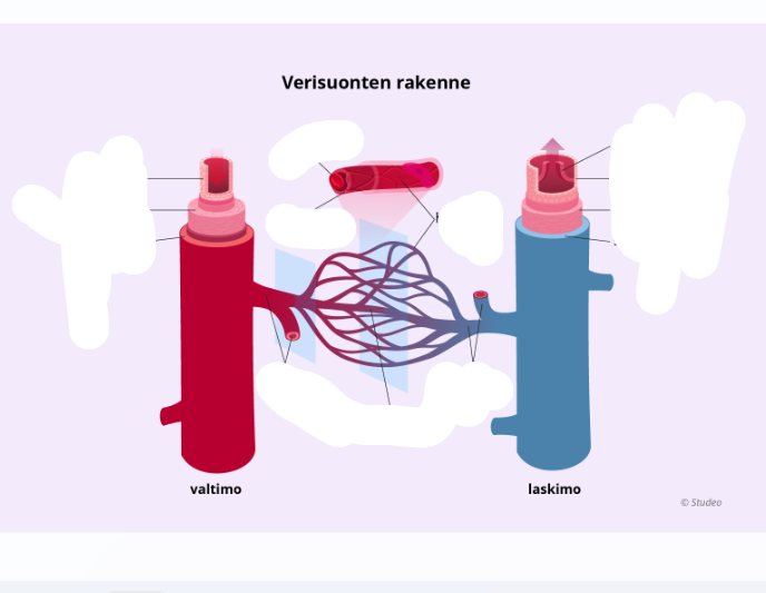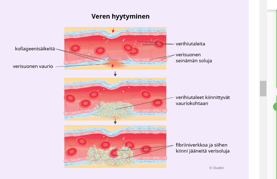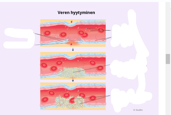 Verisuonen vauriokohtaan kiinnittyy verihiutaleita paikkalapuksi.