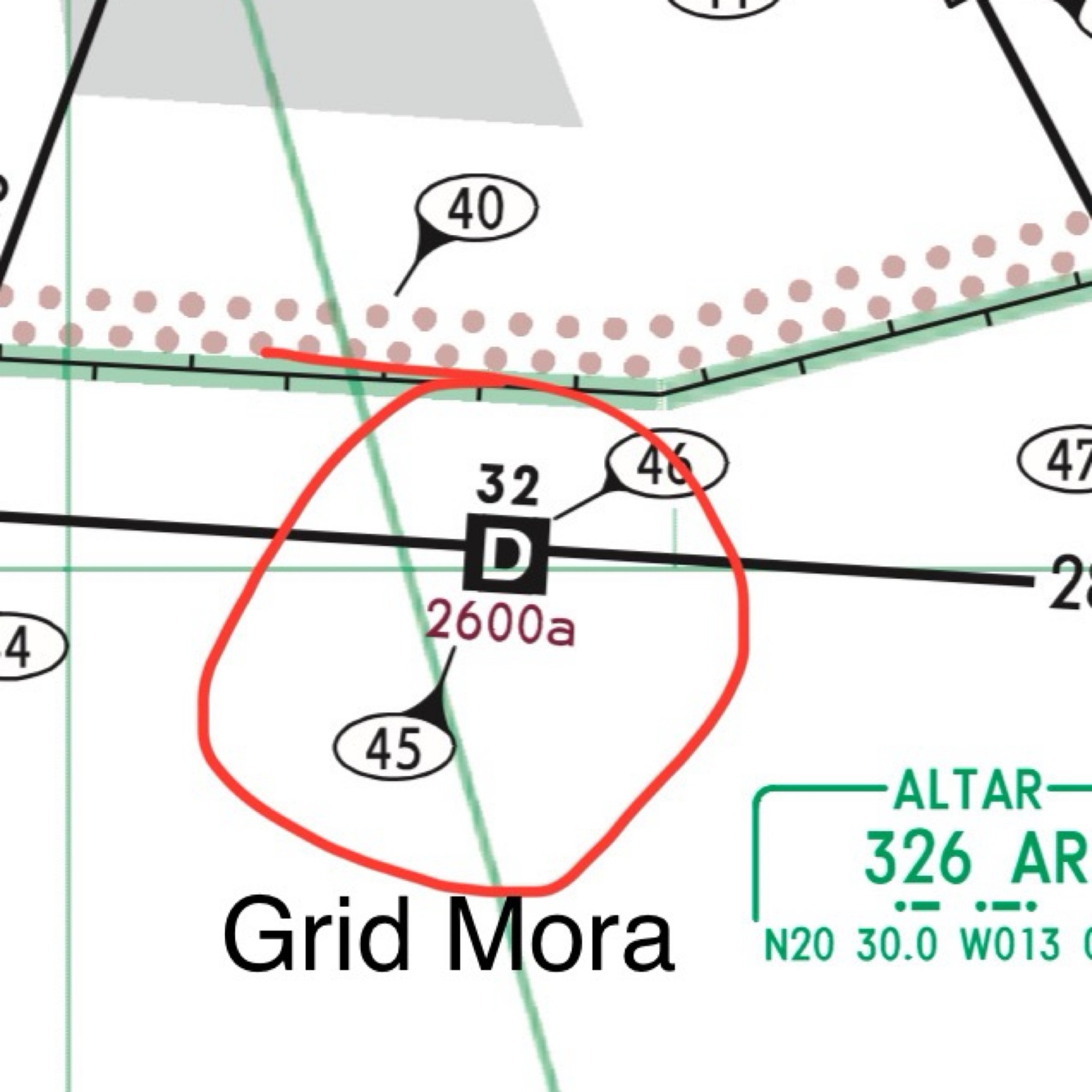 Grid MORA Grid Minimum Off-Route Altitude : Jeppesen only, Same as OROCA — within each 1° × 1° grid. provides clearance 1,000′ non-mountainous / 2,000′ mountainous