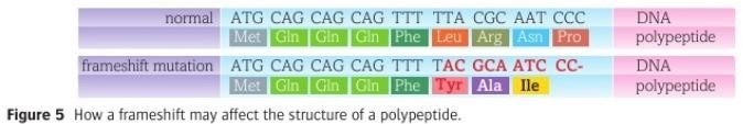 Insertions or deletions of a triplet of base pairs result in the addition of loss of an amino acid, and not a frameshift.