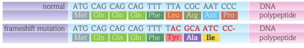How do insertions and deletions cause frameshifts?