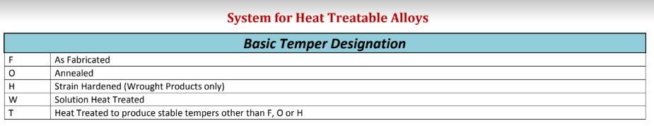 H = Strain Hardened (Wrought Products only)
