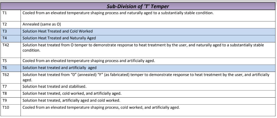 T = Heat treated to produce stable tempers other than F, O or H.