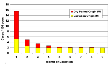 True/false: the majority of mastitis cases that present in the 1st month after calving are due to infections picked up in the dry period.
