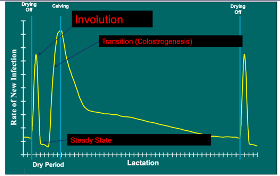 When in the dry period is the cow most at risk of acquiring a new mastitis?