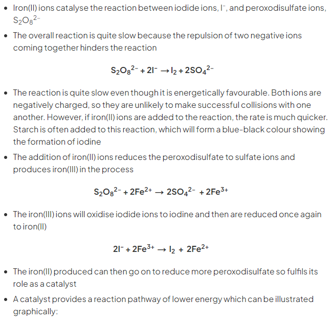 How does Fe(II) catalyse the reaction between I- and S2O8 2-?