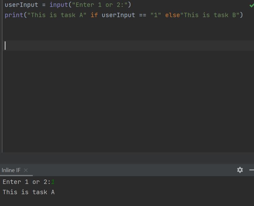 print(“This is task A” if userInput == “1” else “This is task B”)
