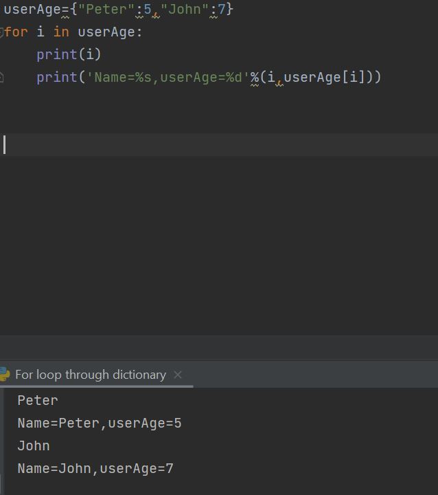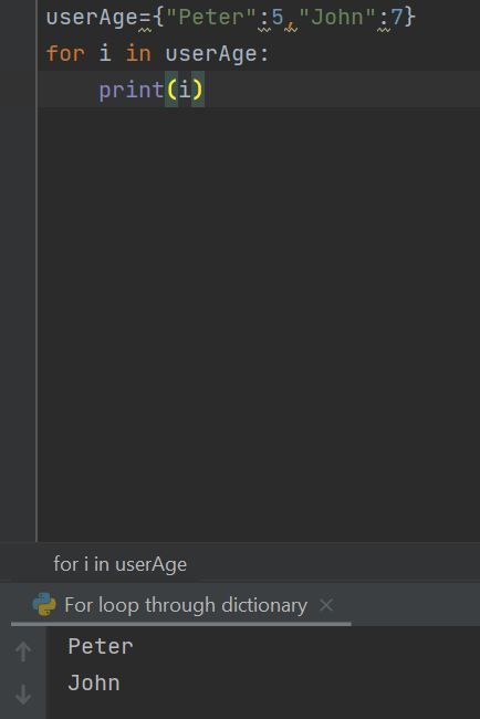first time the loop runs, it assigns the value Peter to i and age [i}] refers to the value assigned to Peter i.e. 5