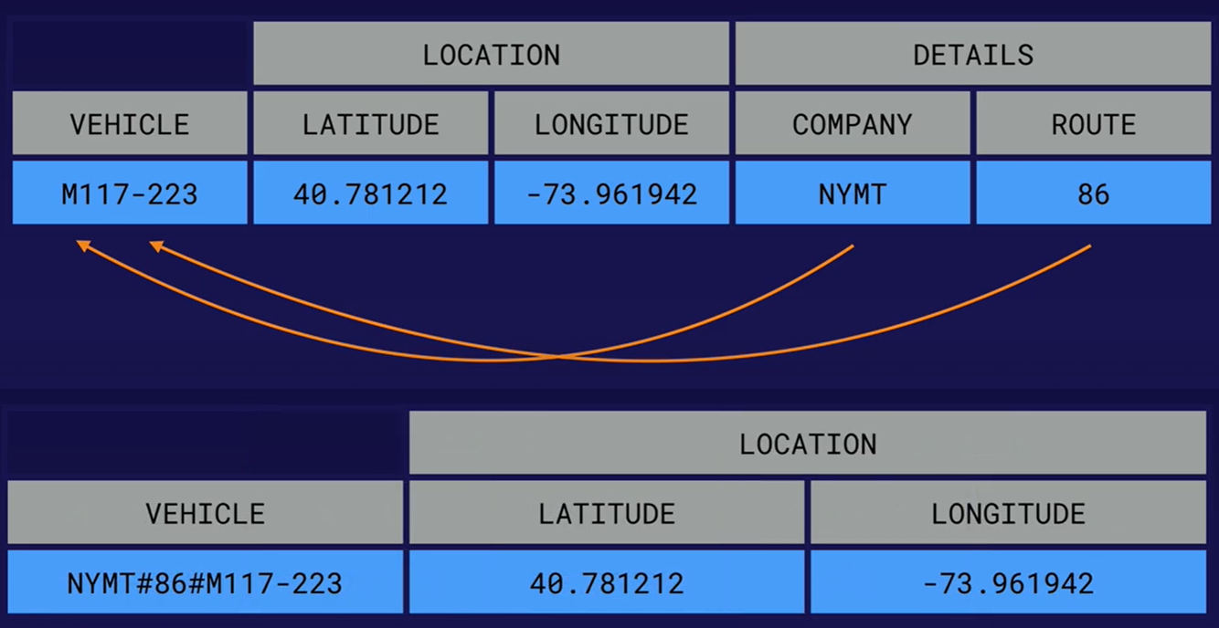 Because the best way to query Bigtable efficiently is by row key, it’s often useful to include multiple identifiers in your row key.
