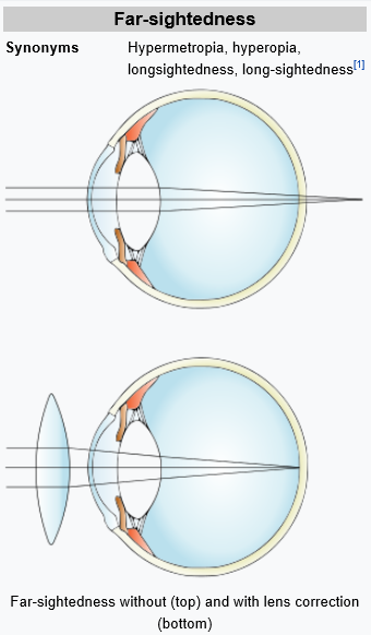 Hyperopia = farsightedness, i.e. ability to see things far away, but not close.
