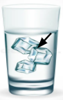 2.) Draw an arrow to show how heat flows between the ice cube and the water in this glass.
