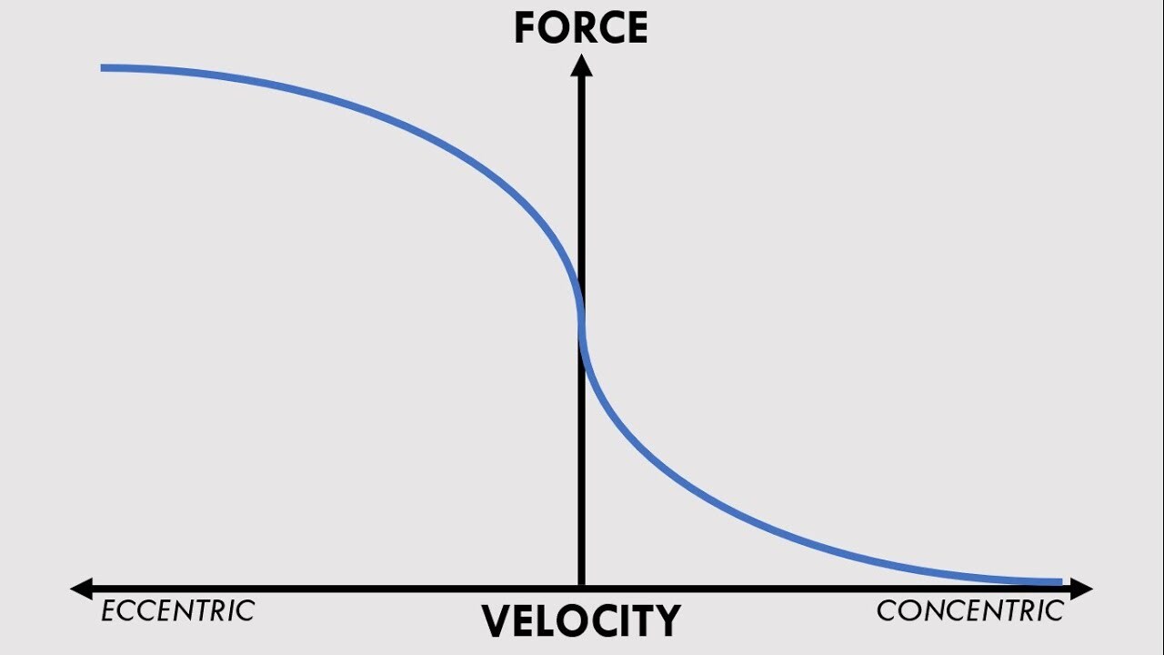 As the velocity of a concentric action increases, its ability to produce force DECREASES; during an eccentric action, as velocity increase, the ability to develop force also INCREASES.