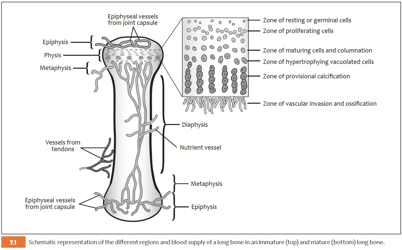 Metaphysis: Nutrient foramen. PARTICULARLY BLOOD RICH -> osteomyelitis predisposition