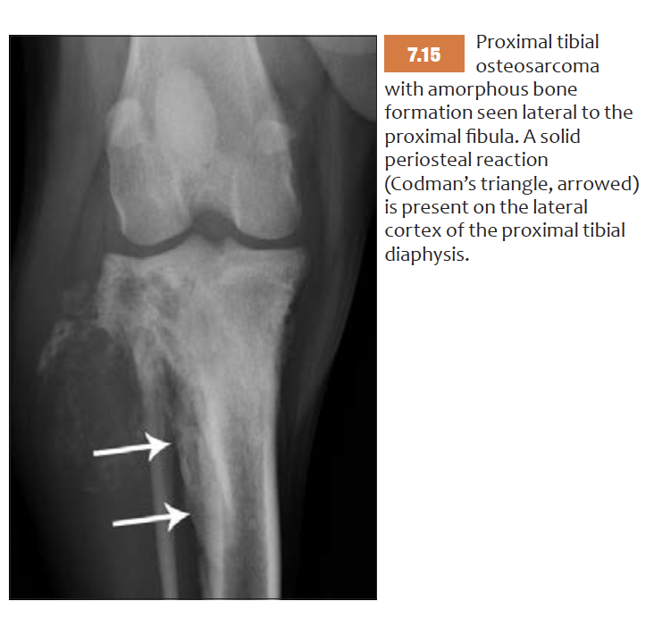 NOT PERIOSTEAL REACTION -> neoplastic new bone, beyond confines of periosteum