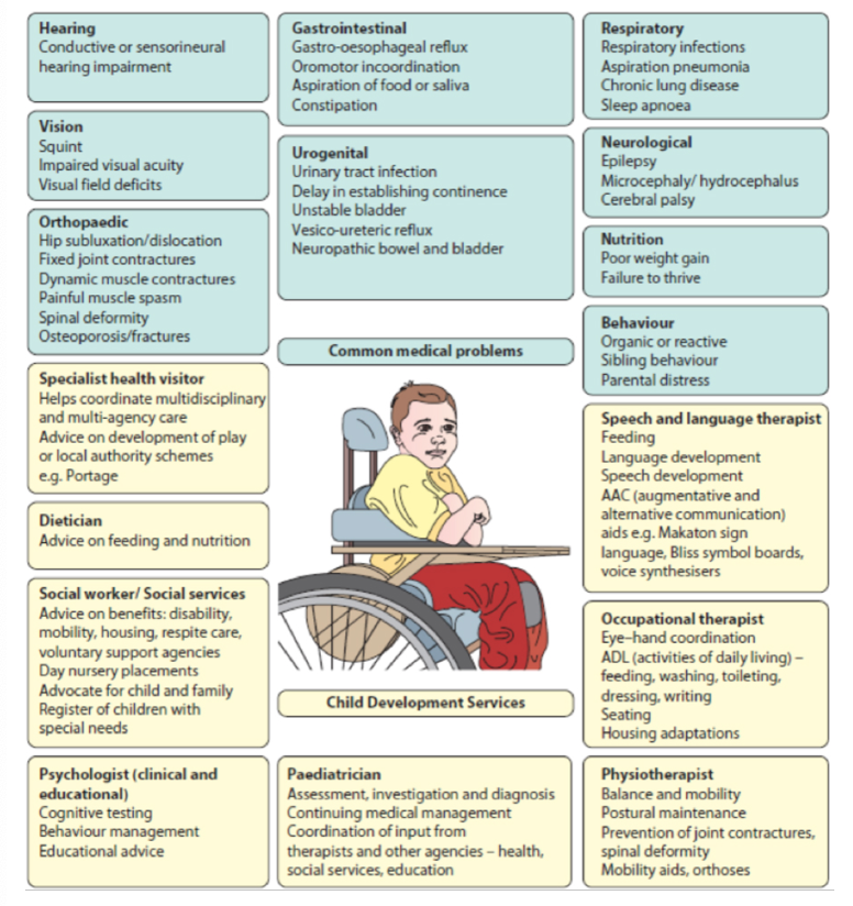 The multidisciplinary team – the many professionals who may be involved in the care of children with developmental problems.