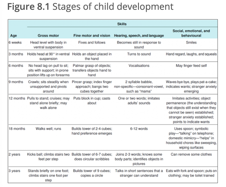 Summarise the stages of child development