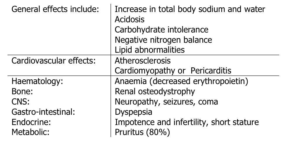 What are some effects that CKD has on the body, e.g haemotologic and CNS?