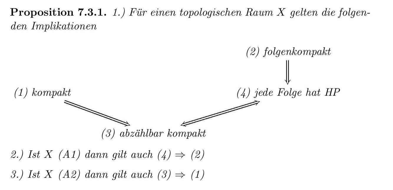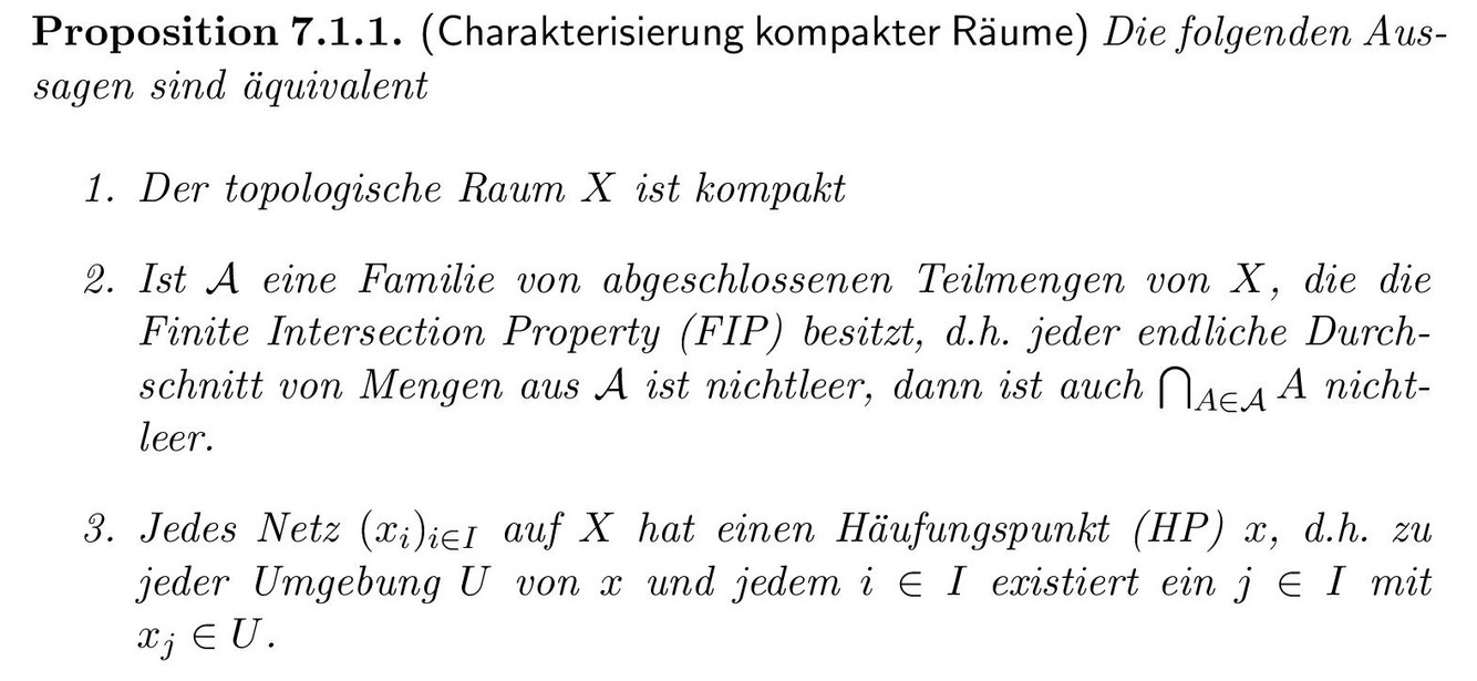 Benenne einige charakterisierende Eigenschaften von kompakten Räumen!