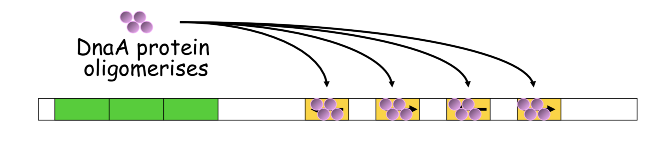 DnaA is a protein thats only formed during gene expression. therefore once its used up to initiate replication with the cell, it cant be used again to contiue replicating more unil there is more DnaA made. positive feedback loop.